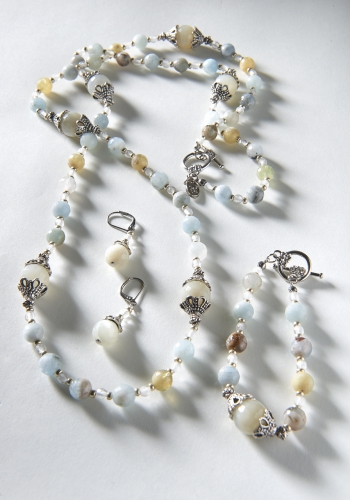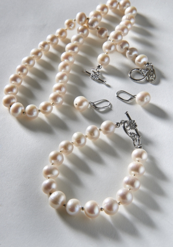 The sets are crafted asymmetrically, matinee and multi-stringed. The colours are subtle or vibrant. The textures are opaque or translucent. The result yields a look that transcends function and trend and simply looks fabulous.